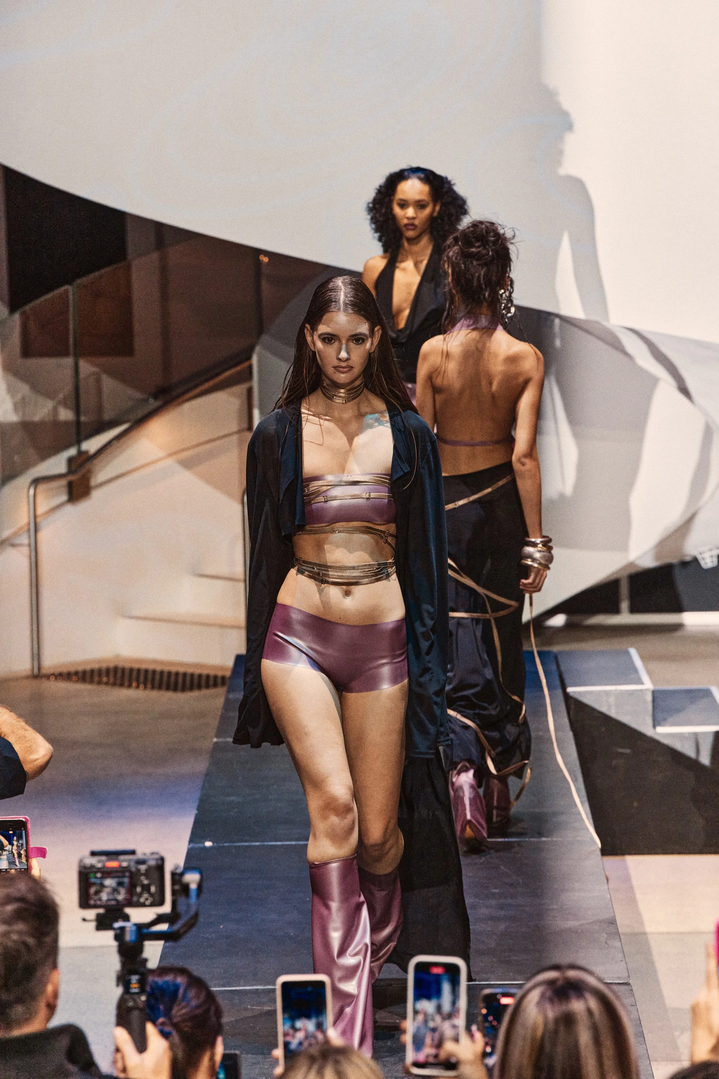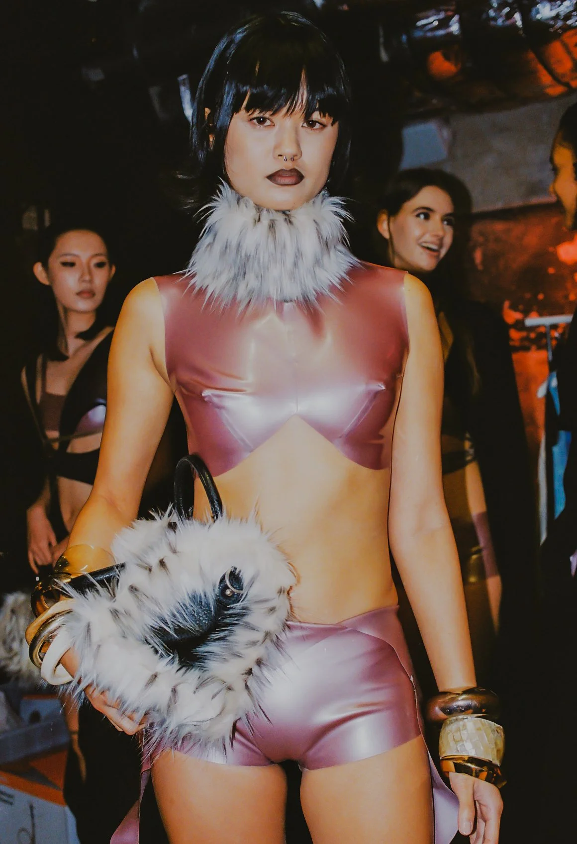 Second Skin: The Female Complex, explores the psychological cost of transformation and the tension between vulnerability and control. Handcrafted in Sydney, each piece—sculpted from natural latex, powermesh, and faux fur—acts as a second skin, balancing resilience with softness. This debut runway collection is both intimate and unapologetic, reclaiming space for women’s bodies in all their complexity.